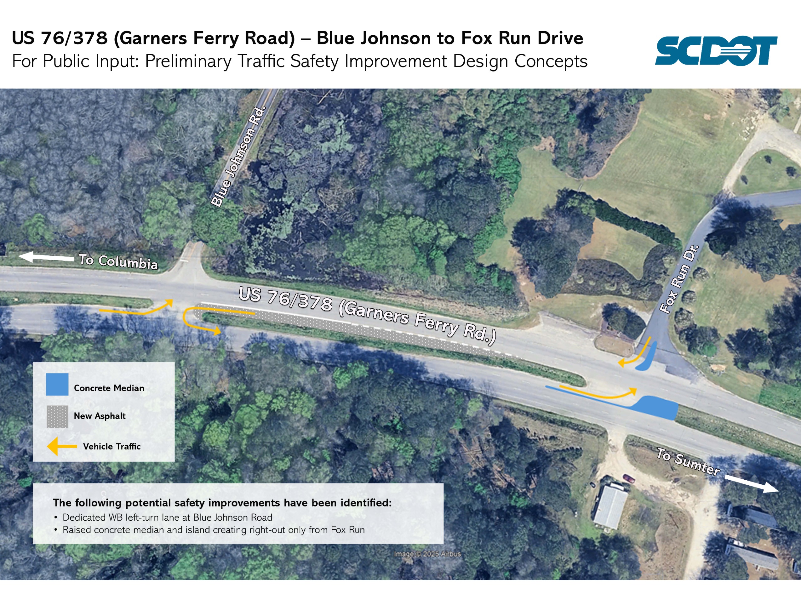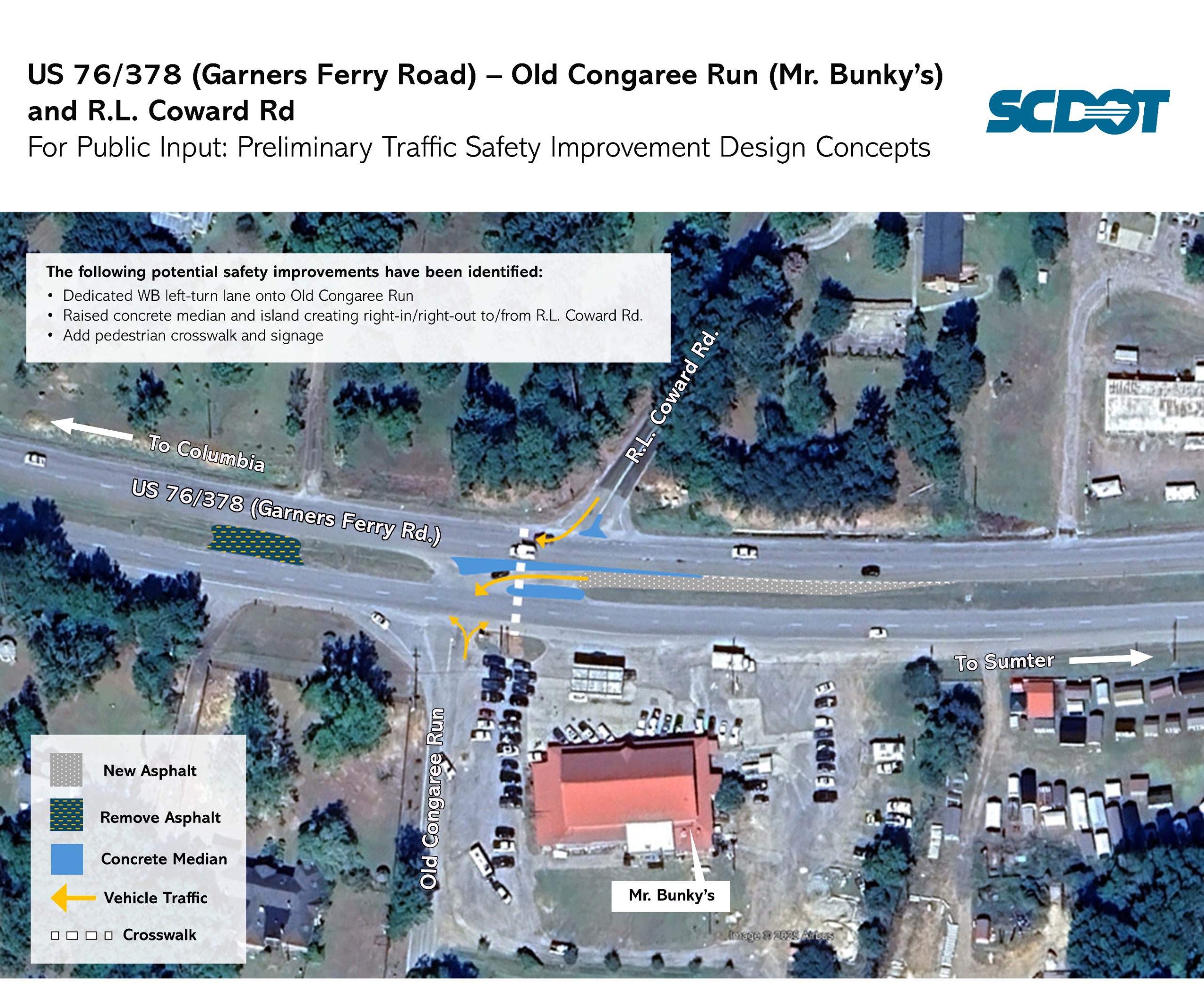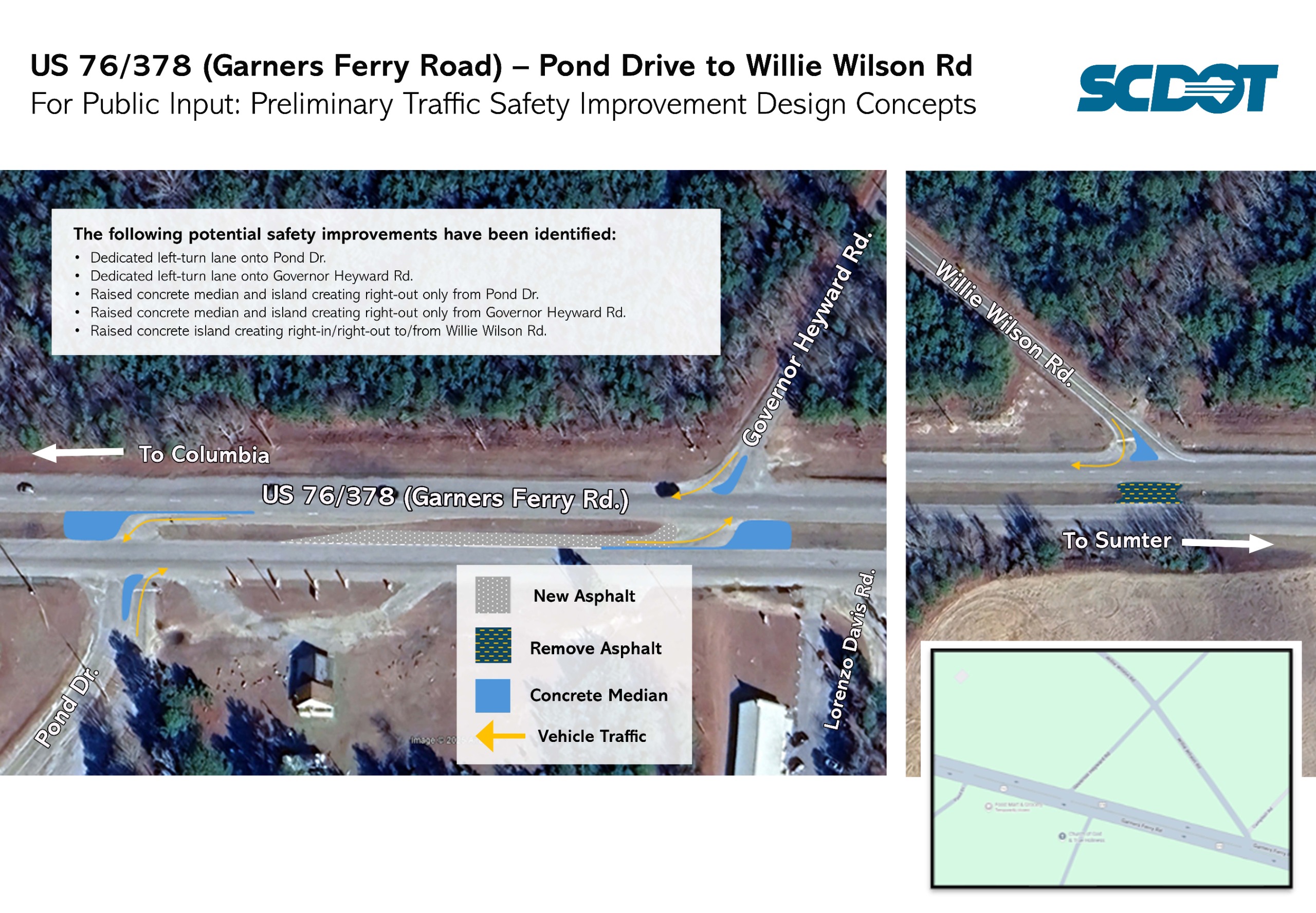 The department has identified safety concerns along this stretch of Garners Ferry and while we have identified some potential solutions, we are seeking public input on these measures before moving towards design and construction. Also, we will be using public input as one element in prioritizing which improvements move forward to implementation.